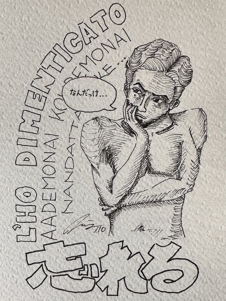 ペンを使用して描いたイタリア語のフレーズを使ったイラスト。