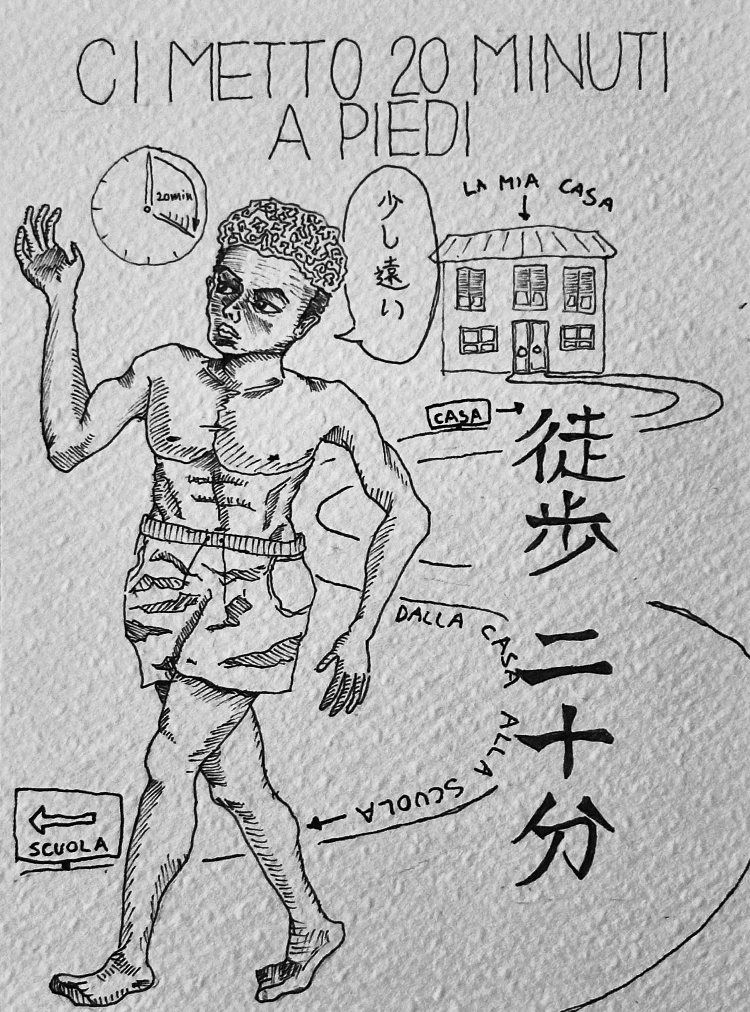 ペンを使用して描いたイタリア語のフレーズを使ったイラスト。